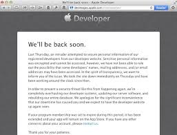 In order to prevent a security threat like this from happening again, we’re completely overhauling our developer systems, updating our server software, and rebuilding our entire database. We apologize for the significant inconvenience that our downtime has caused you and we expect to have the developer website up again soon. Apple’s developer site also houses sensitive financial information, which is encrypted.